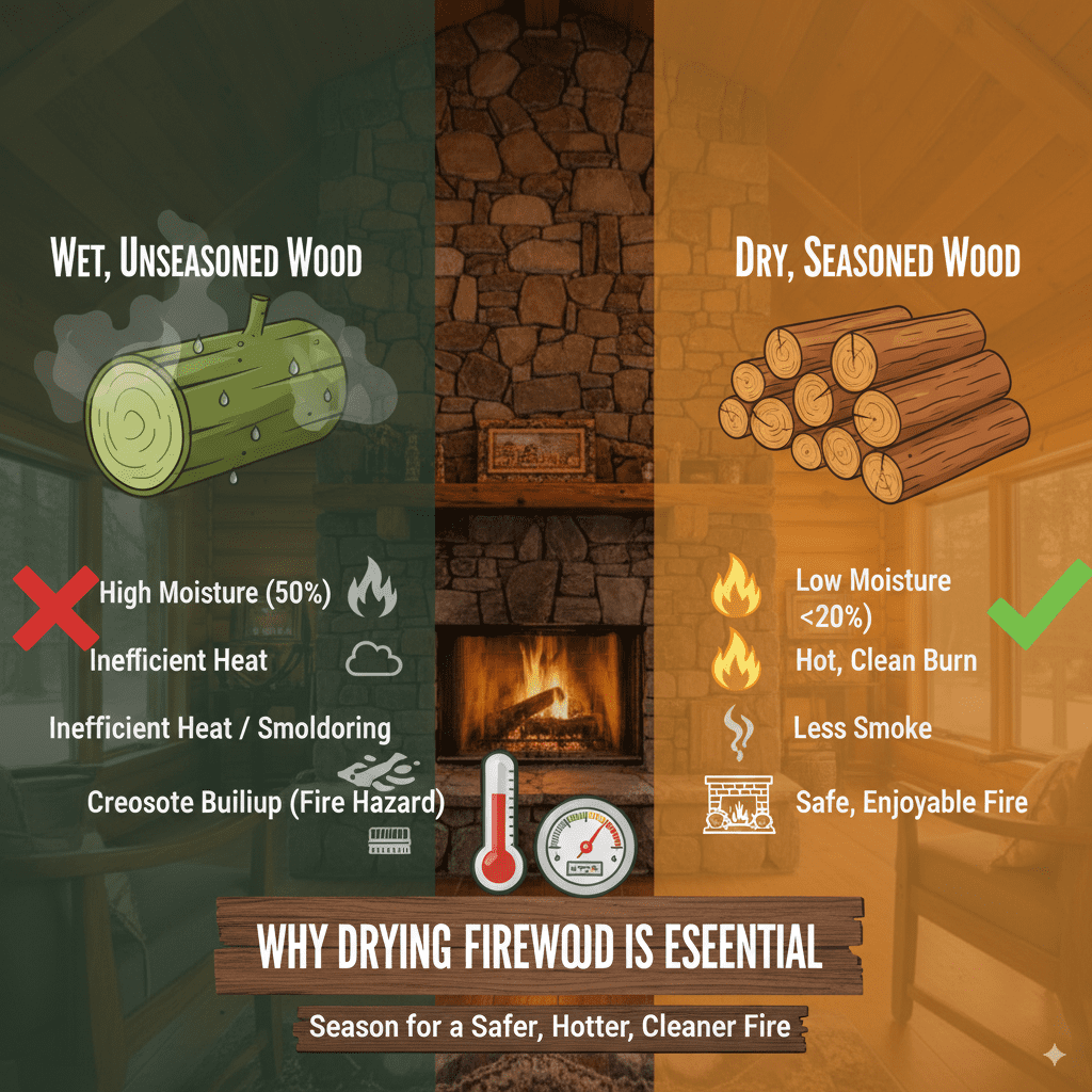 - Reduced Heat Output: A significant amount of energy is wasted boiling off the water in the wood instead of producing heat.