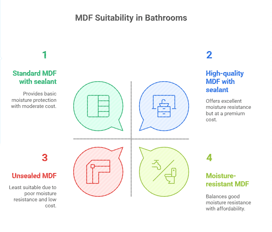 But it needs careful handling in wet areas. Always weigh the pros and cons. Consider your specific bathroom conditions. This helps in making the right choice. MDF can be a viable option. Just use it wisely.