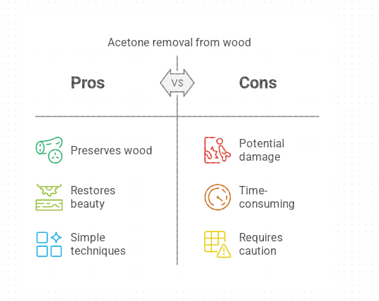 Removing acetone from wood can be tricky. It requires careful steps to avoid damage.