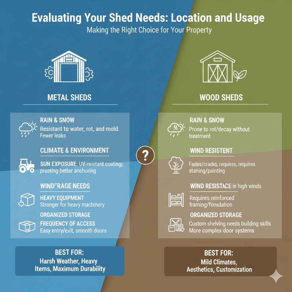 Answer: The best material depends on your particular needs, like location, budget, and desired style. Both metal and wood sheds offer unique benefits.