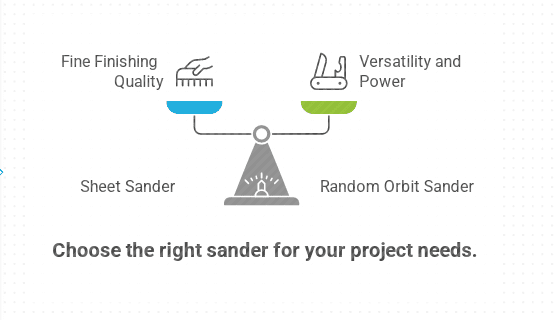 Choosing between a sheet sander and a random orbit sander depends on your needs. Sheet sanders are great for small, flat surfaces. They are simple and easy to control. Random orbit sanders offer versatility for various projects. They handle curves and edges well.